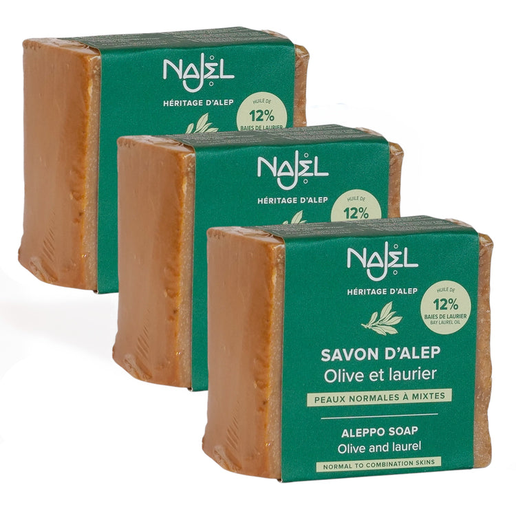 NAJJAR laboratorium lager den ekte og naturlige Alepposåpen med oliven- og laubærolje uten kunstige kjemiske tilsetninstoffer. Den tradisjonelle metoden gir en såpe med ca 20% laurbærolje (LBO). I Alepposåpen som her presenteres benyttes en mer moderne produksjonsmetode, og derfor kan NAJJAR garantere for konsentrasjonen av laurbærinnhold (LBO) som er oppført med tall på sine produkter. Egeenskapene til LBO er kjent verden rundt for sine dermatologiske evner mot problemhud (eksem, akne, psioriasis, irritert hud mm).