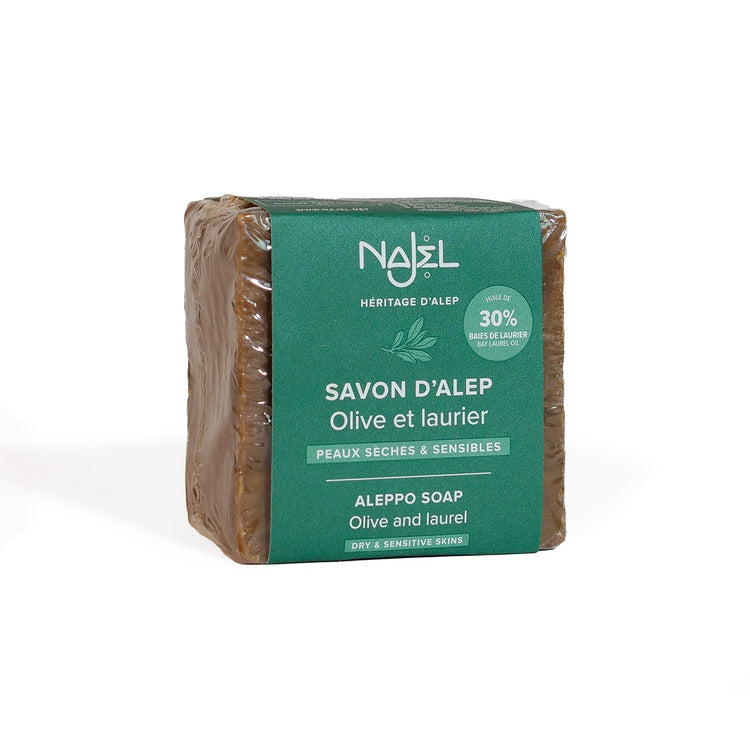Alepposåpen fra Najel er utelukkende laget av olivenolje og laurbærolje, to edle oljer med mange velkjente egenskaper. Forsåpet olivenolje er et kraftig rensemiddel som gir huden næring, beskyttelse og mykhet. Laurelbærolje er anerkjent for sine desinfiserende og regenererende egenskaper.