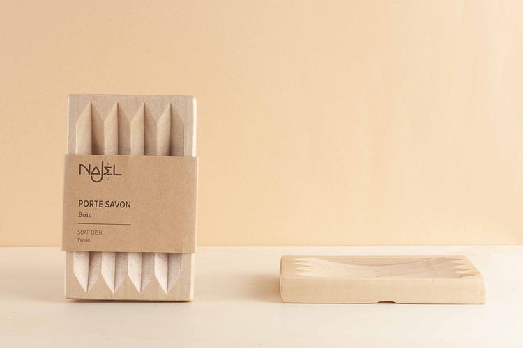 Denne såpeskålen i tre har de ideelle dimensjonene for å få plass til Alepposåpen din. Enkel og naturlig, og den vil holde det tørt hele dagen lang.