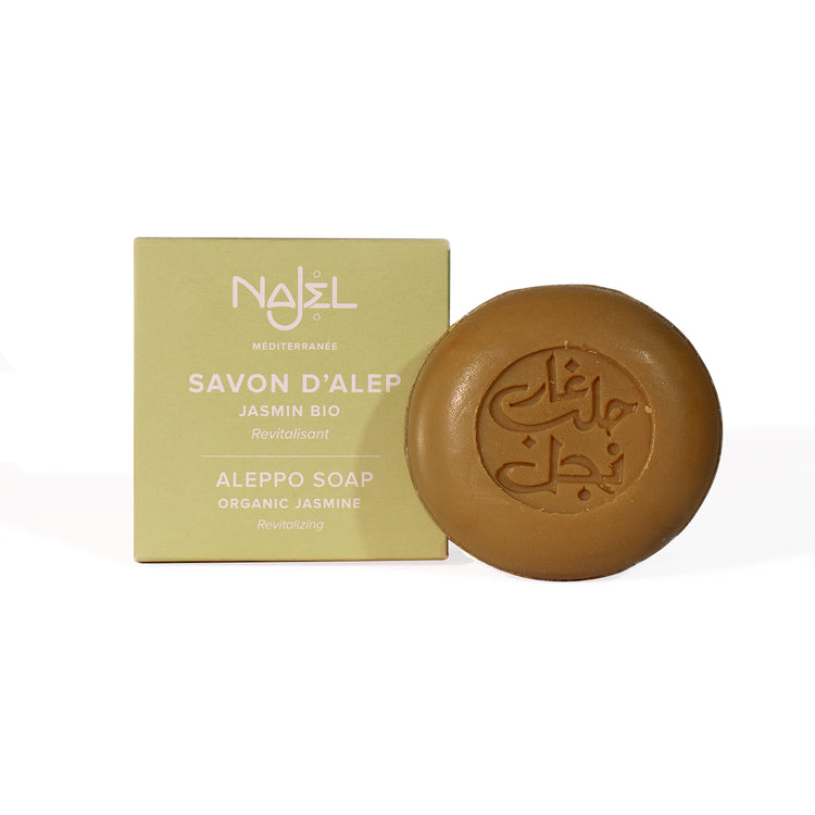 Denne såpen kombinerer den eldgamle Syriske kunnskapen om å lage Alepposåpe med blomstervann fra organisk Jasmin som virker beroligende, avsap- pende og antseptisk. Nyt den nydelig duft av blomsten etter dusjen.