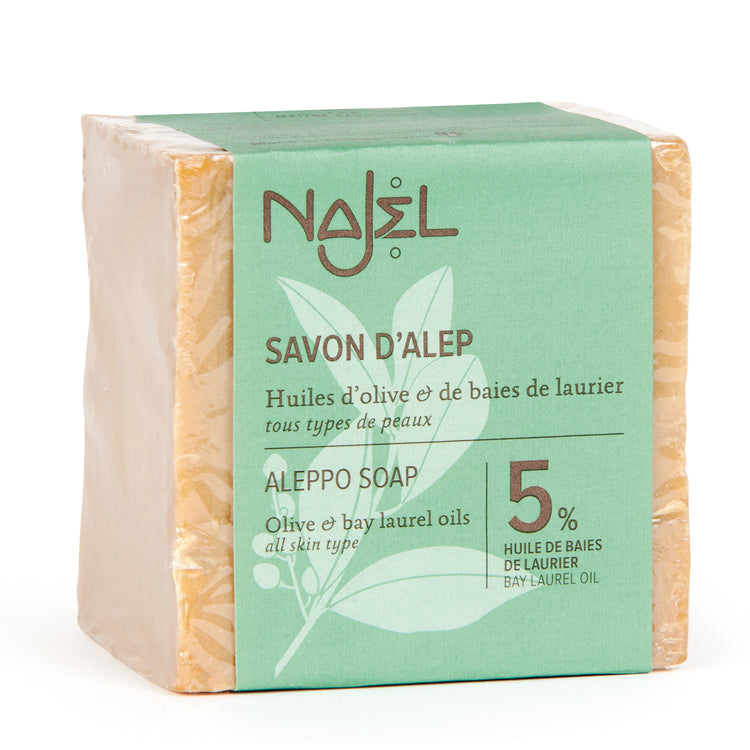 Alepposåpen fra Najel er utelukkende laget av olivenolje og laurbærolje, to edle oljer med mange velkjente egenskaper. Forsåpet olivenolje er et kraftig rensemiddel som gir huden næring, beskyttelse og mykhet. Laurelbærolje er anerkjent for sine desinfiserende og regenererende egenskaper.