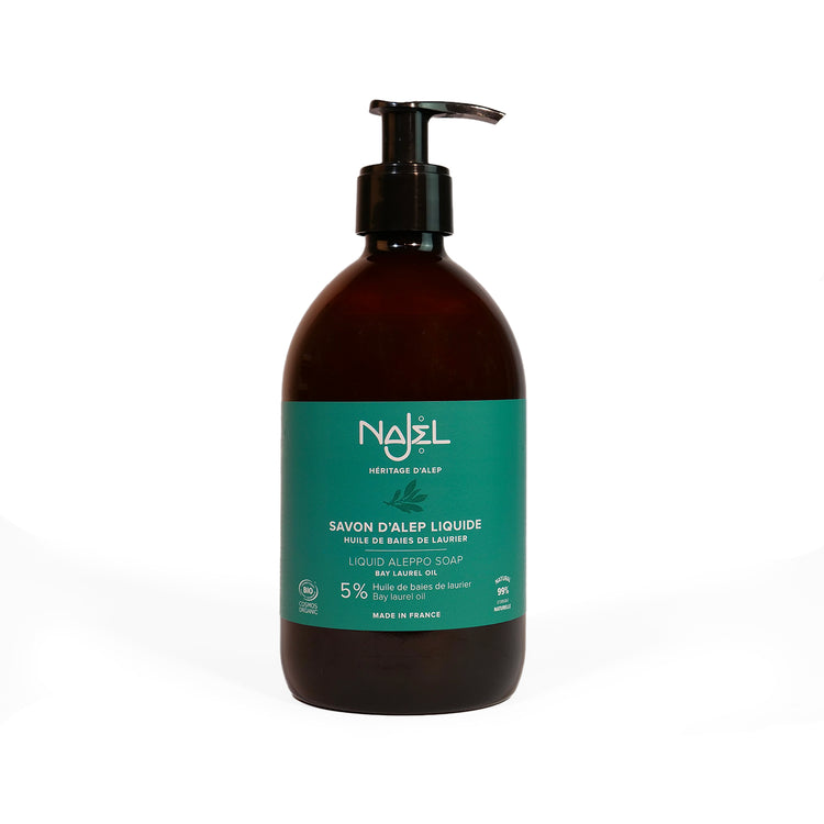 Alle NAJEL-produkter basert på flytende Alepposåpe er produsert i Frankrike i NAJJAR-laboratoriet med organisk olivenolje og laurbærolje.